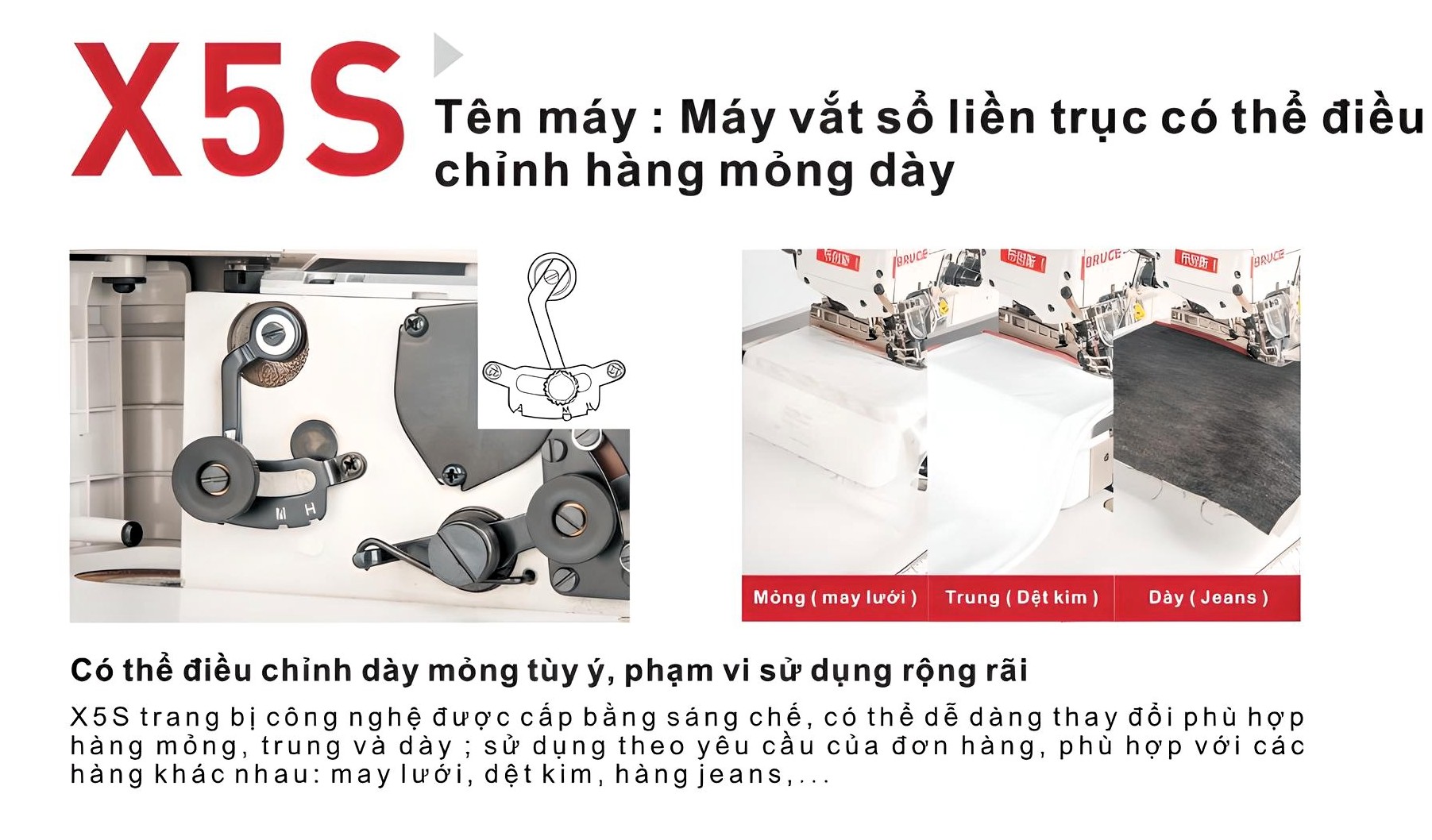 MÁY VẮT SỔ ĐIỀU CHỈNH ĐỘ DÀY VẢI BRUCE X5S